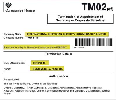 "Η απόφαση αυτή ελήφθη μετά από καταγγελία του επιτίμου προέδρου της ΕΛΟΚ σχετικά με την εξάσκηση απο τον Γ. Μπίκα προπονητικού έργου και συμμετοχή του σε εταιρεία που διοργανώνει σεμινάρια, προπονήσεις, αγώνες Καράτε κλπ και στην οποία ο Γ. Μπίκας είναι διαχειριστής και μέτοχος με 25%." (Αναφέρεται στην αστική εταιρεία του Μπίκα με Κραββαρίτη, Γκουβούση και Οτάκε για σεμινάρια και εξετάσεις Σότοκαν).