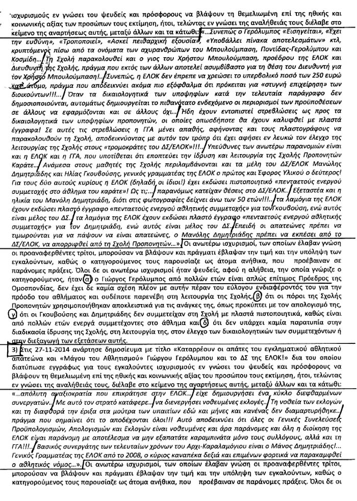 4 - Αισθάνομαι δικαιωμένος γιατί αποδείχθηκε ότι, αν και αργά έκανα την σωστή επιλογή να ορθώσω ανάστημα στην πολιτική του εκμαυλισμού, του ευνουχισμού και της απόλυτης εξευτελιστικής υποτέλειας που απαιτεί από όλους μας ο ενορχηστρωτής της διαγραφής μου. Αισθάνομαι νικητής το ίδιο και για εσάς, γιατί έχασα μια ψηφοφορία αλλά κερδίσαμε το προνόμιο της καθαρής συνείδησης και τις ψυχές της υγιούς πλειοψηφίας του κόσμου του καράτε.