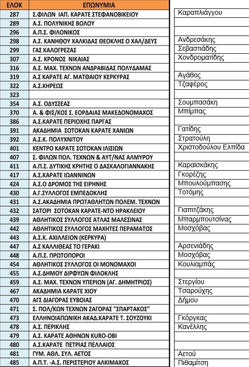 Δίνεται ο πίνακας των 119 σωματείων με προσθήκη των υπεύθυνων-προπονητών σε αυτά!