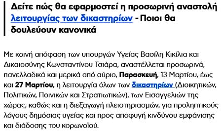 και την Παρασκευή 27-3-2020 κλείνουν τα δικαστήρια, όπως στην ανακοίνωση!