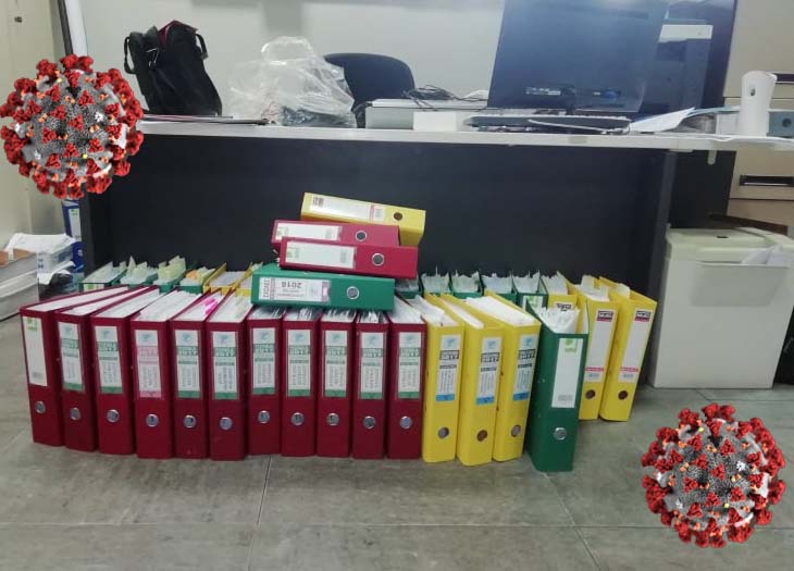 Η φωτό από το ΚΙΜΕ: Φάκελοι δήθεν "τακτοποιημένοι" στο πάτωμα, αλλά προσωπικά είδα άλλους να είναι πεταμένοι στο πάτωμα! Ένα πάτωμα σκέτη ... "λέπρα"! Και ο Επίτιμος Κλόουν (κατ' άλλους "ρεμάλι") παρακολουθούσε από τις κρυφές κάμερες! Τους κορονοϊούς τους έβαλα εγώ γιατί εκεί θα βρούν οπωσδήποτε την ιδανική φωλεά!!! |