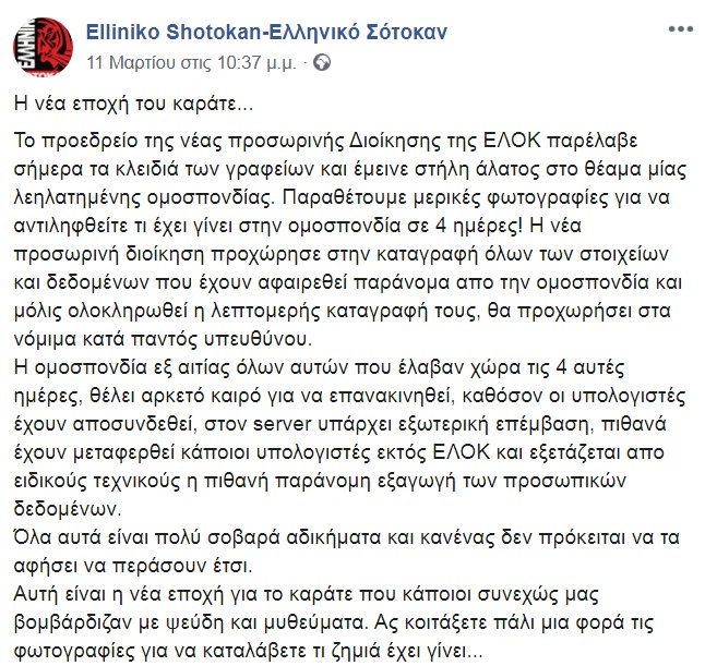 Ανάρτηση στο Elliniko Shotokan-Ελληνικό Σότοκαν/Facebook 9-3-2020 – 3 μ.μ.
