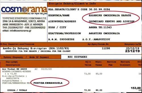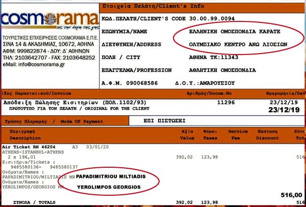Ως αιτιολογία της δαπάνης στο ημερολόγιο του Ταμείου της ΕΛΟΚ εμφανίζεται η συμμετοχή μας στο Turkish Open Grand Prix που έλαβε χώρα στην Κωσταντινούπολη στις 27-29/9/2019. Καθώς τα ταξίδια στον χρόνο δεν γνωρίζουμε να συμπεριλαμβάνονται στις παροχές του συγκεκριμένου ταξιδιωτικού γραφείου, συμπεραίνουμε ότι το μόνο πραγματικό στην υπόθεση είναι η Κωσταντινούπολη.