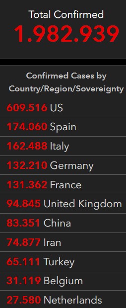 15/4/2020 - Τα κρούσματα παγκοσμίως σήμερα!