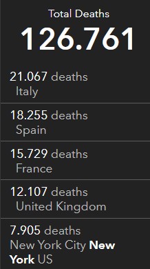 15/4/2020 - Οι θάνατοι παγκοσμίως σήμερα!