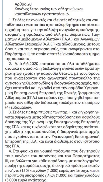 Παρεμβλήθηκε η επανεκκίνηση του αθλητισμού με τα πρωτόκολλα για τους αθλητές:
