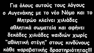 Ο Αυγενάκης παρέλαβε αθλητισμό με 13.000 σωματεία και τον κατέβασε στα 3.408, που πήραν τις επιχορηγήσεις! Αυτό λέτε ότι είναι επιτυχία ή μήπως είναι επιτυχία το ότι διώχνει τον Γερόλυμπο και ανεβάζει εσάς, ώστε να τον δοξάζετε, όπως στην φωτό δεξιά???