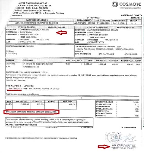 Ευχαριστήρια επιστολή Καράτε στον Αυγενάκη