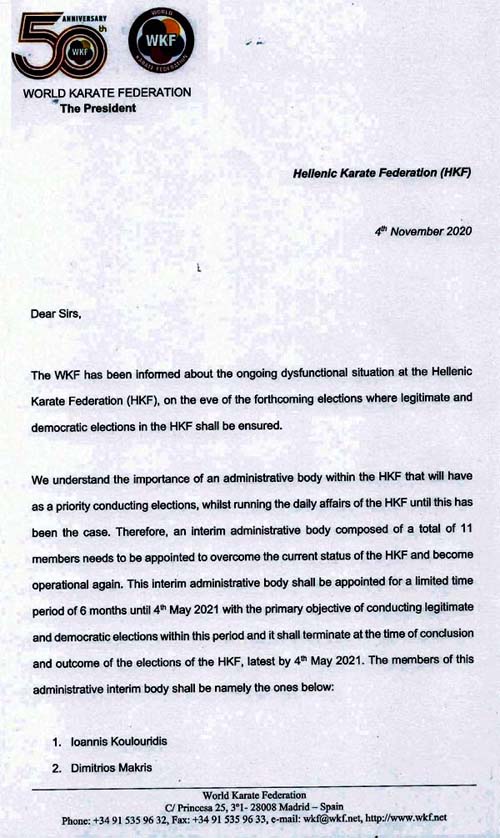13/12/2020 - Από την Ελληνική Ομοσπονδία Καράτε