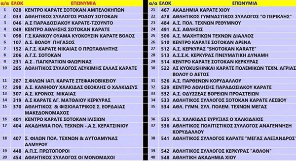 Με κλικ εδώ θα βρείτε τα 159 σωματεία του καράτε της ΕΛΟΚ (τόσα τα βρήκα εγώ) κατά αφαβητική σειρά, που παίρνουν χρήμα.