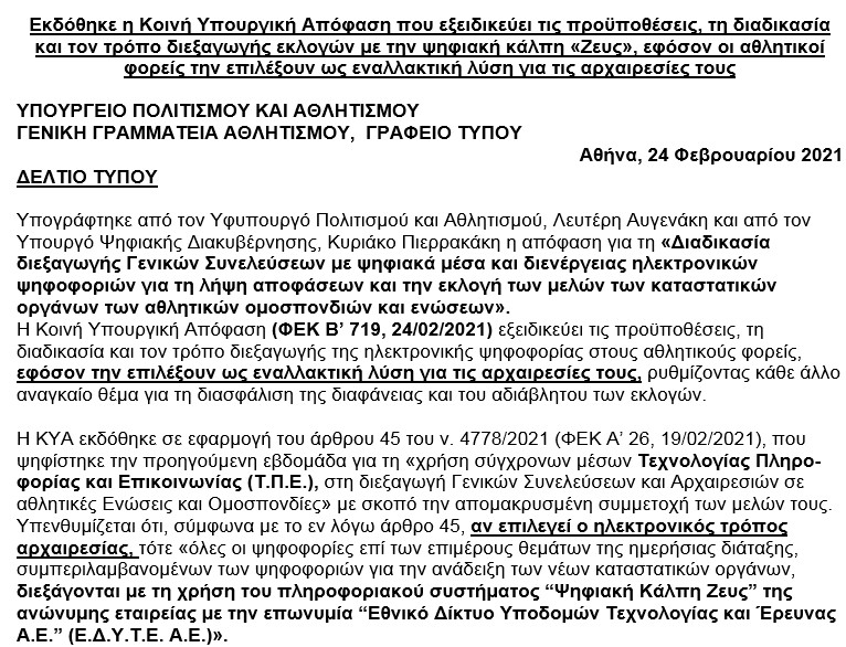 24/2/2021 - Απόφαση ΓΓΑ για Ηλεκτρονικές Εκλογές