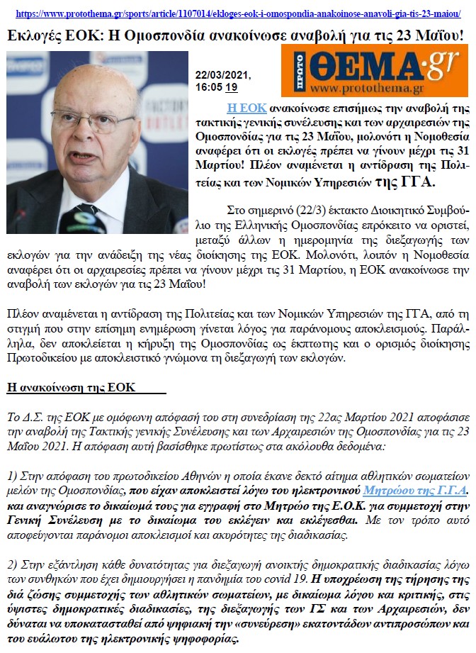 21/3/2021 - Από το FB της ΕΛΟΚ: ΑΝΑΚΟΙΝΩΣΗ!