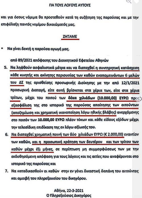 δύο Προσωρινές Διαταγές που εξέδωσε σήμερα 26.3.3021 ο Πρόεδρος Πρωτοδικών του