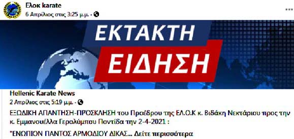 Άλλωστε, στις 6-4-2021 ενεργοποιήθηκε και το Ελοκ-karate/FB με την Έκτακτη Είδηση του γεμάτου ευτυχία ανίκανου και άχρηστου ΚΙΜΕ άνω δεξιά!