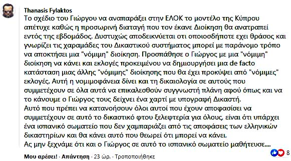 7/5/2021 - Σχόλιο του Θανάση Φυλακτού στο λογαριασμό του Σπύρου Δρακόπουλου (ή του Σπύρου Χρήστου, το ίδιο είναι!)