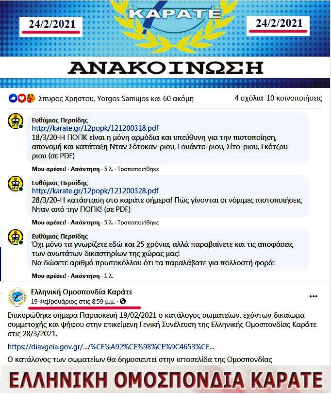 Τον πίνακα του Hellenic Karate News τον ακολούθησαν οι επόμενες αναρτήσεις του Δρακόπουλου και της παρέας του: