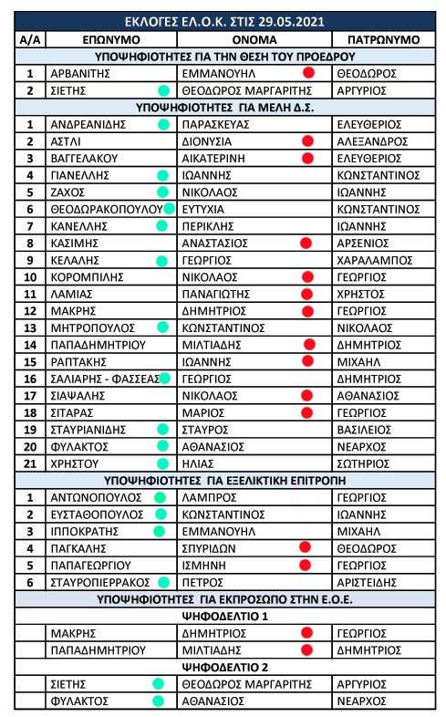 Κυριακή, 23/5/2021 - Η Προσωρινή της ΕΛΟΚ δημοσιεύει τους πίνακες ψηφοφόρων και υποψηφίων για τις εκλογές!