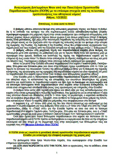 ΜΑΥΡΗ ΛΙΣΤΑ ΝΤΑΝ ΠΟΠΚ: Η ΠΟΠΚ, μετά από επίμονη εισήγηση δική μου, θα τιμωρήσει με αποκλεισμό όλων των αναμιγνυομένων στην προσπάθεια οικειοποίησης των δικαιωμάτων της στο παραδοσιακό καράτε καθώς και κάθε μαθητή τους από την αναγνώριση διπλωμάτων ή κατάταξη μετά από εξετάσεις στο παραδοσιακό καράτε! Ήδη όλοι οι ανωτέρω της Τεχνικής Επιτροπής καθώς και του ΔΣ της ΕΛΟΚ καθώς και οι σύλλογοί τους αποκλείονται από κάθε δραστηριότητα της ΠΟΠΚ, διότι ενεργούν δολίως και παράνομα εναντίον των συμφερόντων της και του αθλητικού πνεύματος!!! Όλοι σας κάνετε το καράτε που κάνετε και τίποτα παραπάνω απο αυτό! Αρχίζει η "Επιχείρηση Σε Θυμάμαι!"