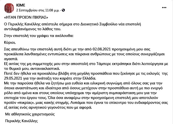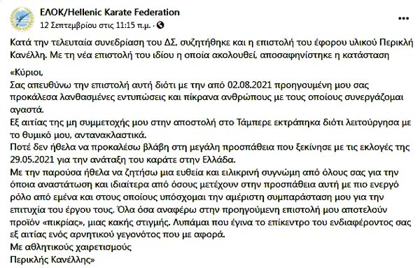 7 - Ο Περικλής Κανέλλης κατά τον χρόνο της υποψηφιότητάς του είχε καραμπινάτο κώλυμα, διότι με αποφάσεις του ΔΣ ο πατέρας του Γιάννης Κανέλλης είχε προσληφθεί πανηγυρικά ως ομοσπονδιακός προπονητής στην ΕΛΟΚ και είχε συνοδέψει την εθνική ομάδα στο εξωτερικό βάσει του εγγράφου 513/26-5-2021 και με τη βούλα της ΓΓΑ με ημερομηνία 3/6/2021 (με κλικ στην εικόνα βλέπετε ολόκληρο το έγγραφο)! Συνεπώς, και αυτός είναι έκπτωτος!