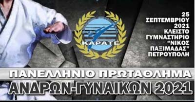 Με μεγάλη επιτυχία πραγματοποιήθηκε το Σάββατο (25/9) στην Πετρούπολη το Πανελλήνιο Πρωτάθλημα Καράτε Ανδρών Γυναικών. Συμμετείχαν όλα τα «δυνατά» ονόματα του αθλήματος, ενόψει του Παγκοσμίου Πρωταθλήματος του Ντουμπάι, το Νοέμβριο (11-16/11).
