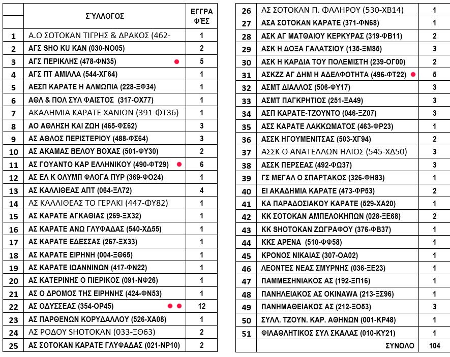Ο πίνακας δείχνει την σκληρή πραγματικότητα ότι εκτός από τους πρώτους δέκα συλλόγους, που έχουν πάνω από 10 αθλητές, όλοι οι υπόλοιποι 71 είναι έτοιμοι να κλείσουν, διότι δεν μπορούν να συντηρηθούν από τις μηνιαίες συνδρομές των αθλητών τους!!!