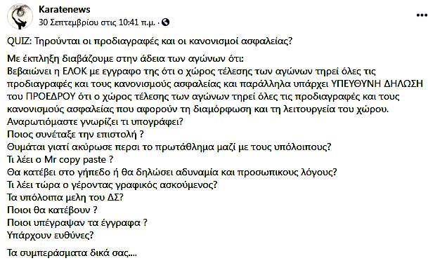 Και με το που δημοσιεύεται η Άδεια των Αγώνων αρχίζει και η κριτική από τον Γερόλυμπο: