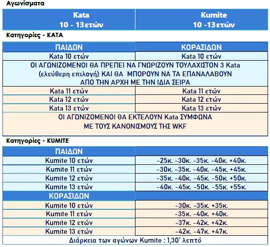 Από τον ανωτέρω πίνακα έχουμε συνολικά 6 κατηγορίες Κάτα και 32 κατηγορίες Κούμιτε, σύνολο 38 κατηγορίες αγώνων! Αυτά τα γράφω για τους άχρηστους της ΓΓΑ, στους οποίους λένε "μεγάλη επιτυχία στους αγώνες μας" και αυτοί το χάβουνε γιατί είναι άσχετοι και δεν καταλαβαίνουν την μεγάλη αποτυχία! Για να δούμε και τις συμμετοχές των συλλόγων και αθλητών στα επόμενα: