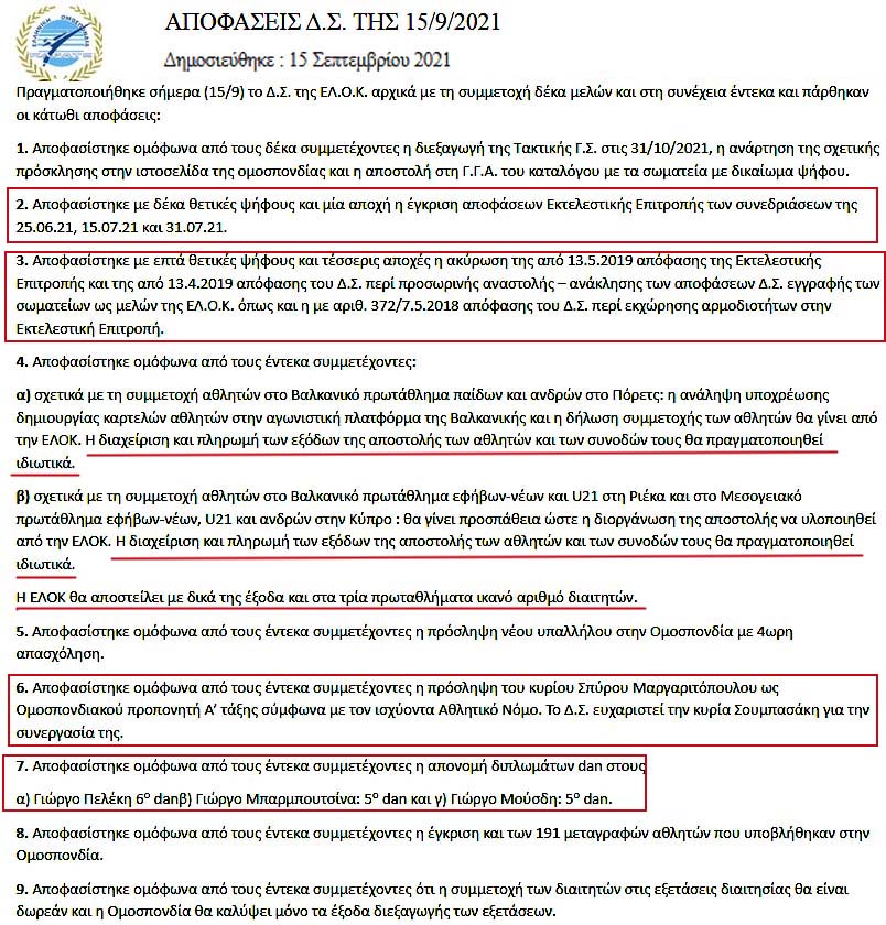 Το Πρακτικό της 15/9/2021 όπως αυτό δημοσιεύτηκε και εφαρμόστηκε άμεσα χωρίς οι αποφάσεις του να έχουν ισχύ αφού δεν είχε ανέβει στη ΔΙΑΥΓΕΙΑ: