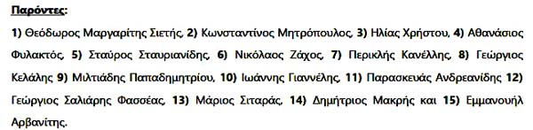 Τα θέματα ημερήσιας διάταξης και οι παρόντες: