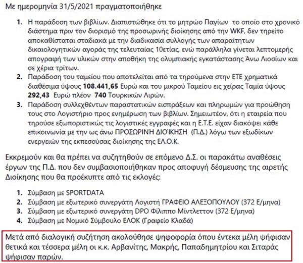Διαβλέπω "παγωμένη συνεδρίαση"! Η Επιστολή Παπαδημητρίου, Αρβανίτη, Μακρή ήταν για την έκπτωση των παρανόμως συμμετεχόντων μελών του ΔΣστις εκλογές και θα δούμε πώς αντιμετωπίστηκε! Ακολούθησε η παραίτηση Σιταρά και η διαδικασία αναπλήρωσής της.