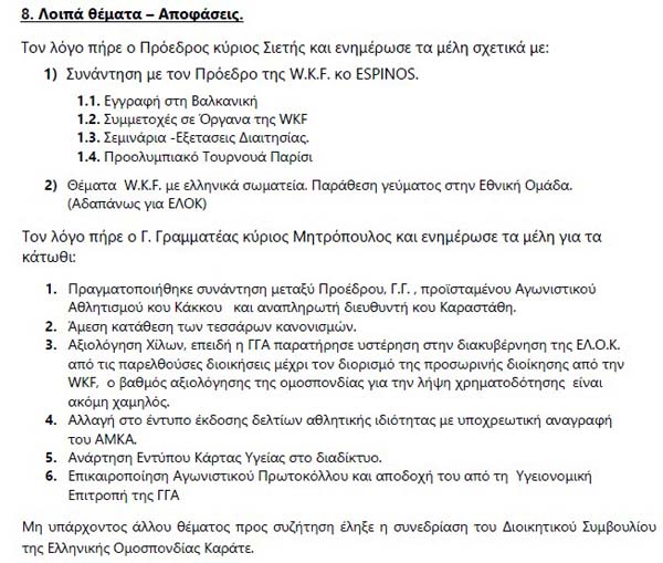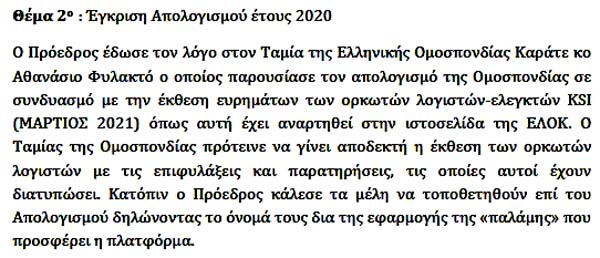 ΔΕΝ βλέπουμε το απαραίτητο πάντα Θέμα με τίτλο "Εγκρίσεις Εσόδων-Εξόδων και Προ-εγκρίσεις Δαπανών" με αποτέλεσμα να αποδεικνύεται η συνέχιση της Διοίκησης της ΕΛΟΚ κατά το "Αμαρτωλό Μοντέλο Απόλυτης Αδιαφάνειας Γερόλυμπου"!
