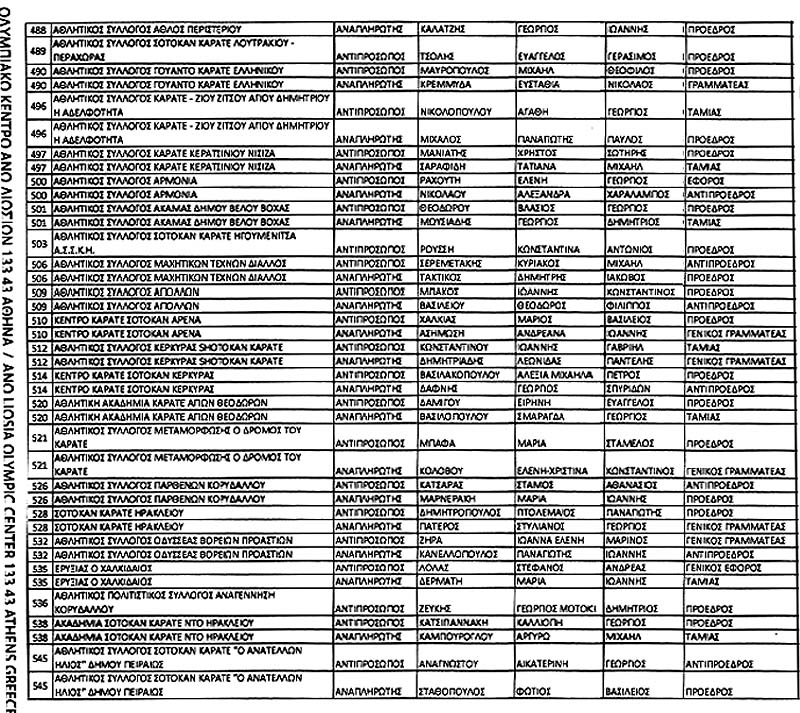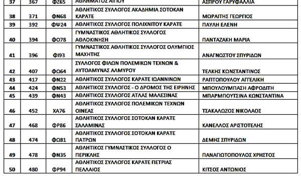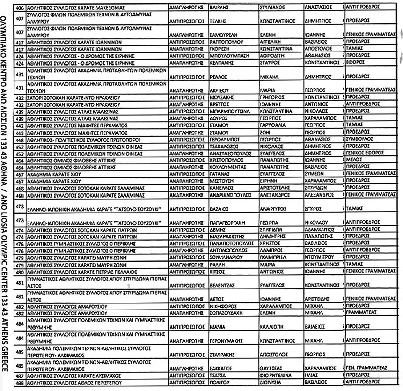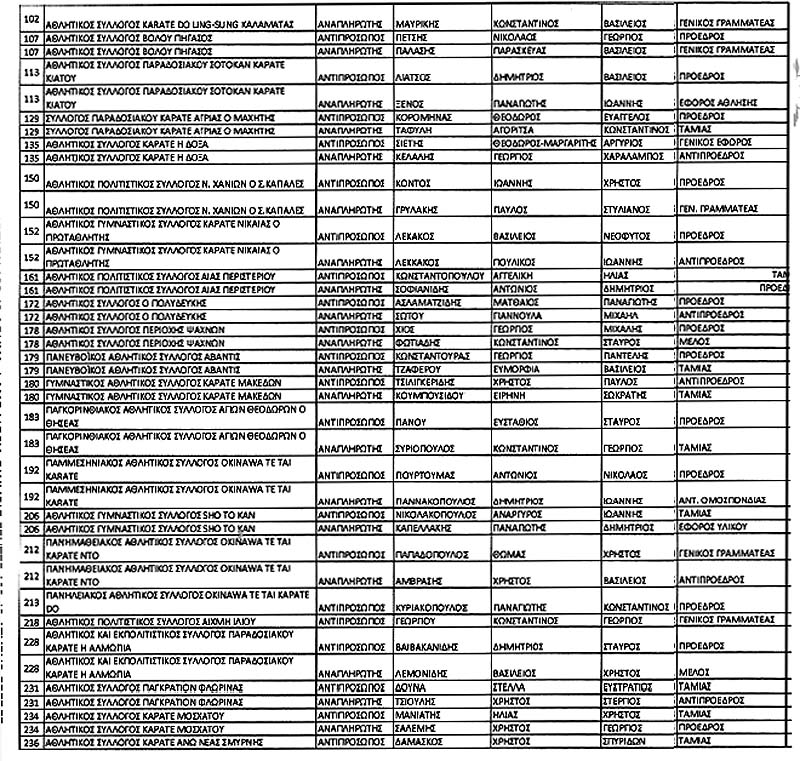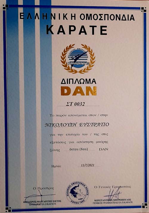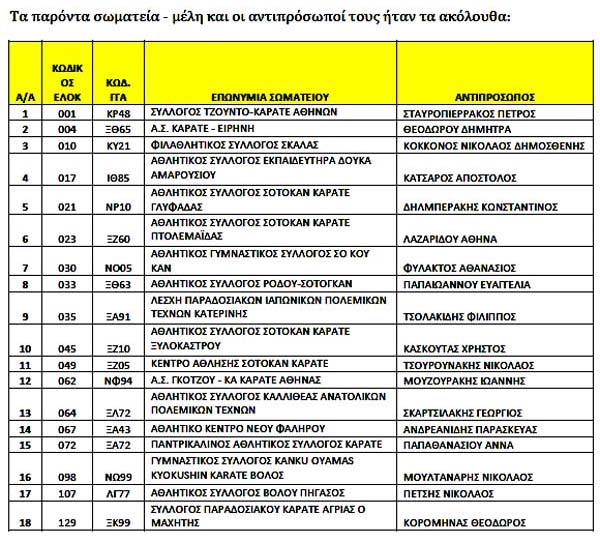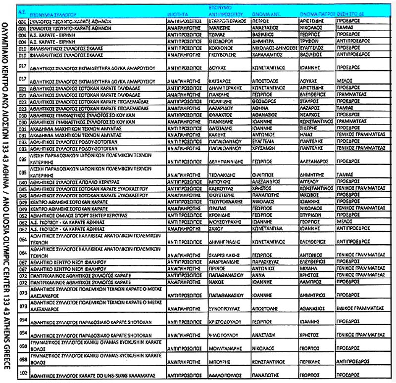 Γιώργος Σανιώτης: 7ο Νταν στο Jeet Kune-Do, Νικήτας Ζαρουχλιώτης: 7ο Νταν στο Kanazawa Karate-do, Νίκος Καραϊσκάκης: 7ο Νταν στο Sudoku Karate-do, Άρης Κραββαρίτης: 7ο Νταν στο Mali tis Grias Karate-do, Γιώργος Μπίκας: 7ο Νταν στο No-Karekla Karate-do, Χρήστος Μπουλούμπασης: 7ο Νταν στο Prostima Erxontai Karate-do, Στράτος Νικολούδης: 7ο Νταν στο Pata Gazi Karate-do, Τετσούο Οτάκε: 7ο Νταν στο Chalandri Karate-do, Πέτρος Πάσης: 7ο Νταν στο Pussycat Karate-do, Παναγιώτης Σταθόπουλος: 7ο Νταν στο Mavri Cobra Karate-do, Σταύρος Σταυριανίδης: 7ο Νταν στο Okinawa Te-Tai Karate-do, Δημήτρης Τσακατάνης: 7ο Νταν στο Antonio Mufa Karate-do, Παναγιώτης Χονδροματίδης: Double Monkey Karate-do, Ηλίας Χρήστου: 7ο Νταν στο Mavri Soupia Karate-do!