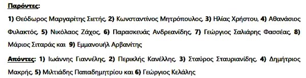 Κατωτέρω βλέπετε τα Θέματα Ημερήσιας Διάταξης και τους Παρόντες-Απόντες: