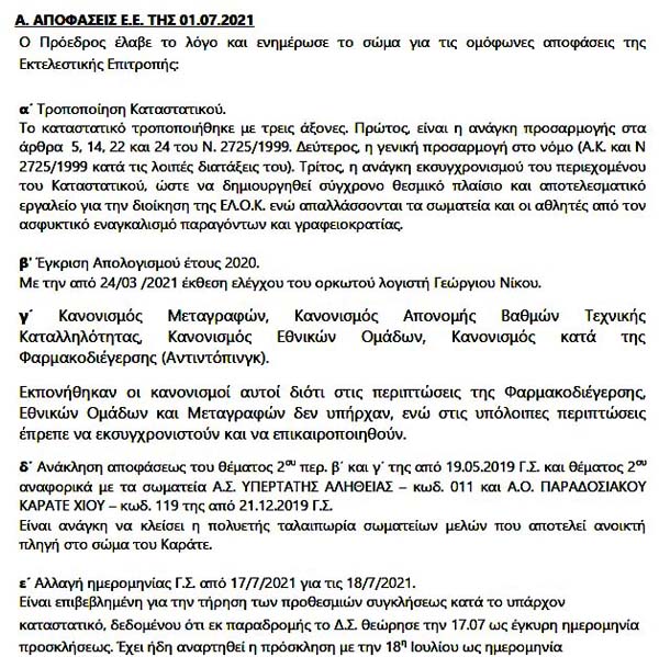 Β - 29/5/2021 - Οι Αρχαιρεσίες της ΕΛΟΚ στη ΔΙΑΥΓΕΙΑ την 21/12/2021!