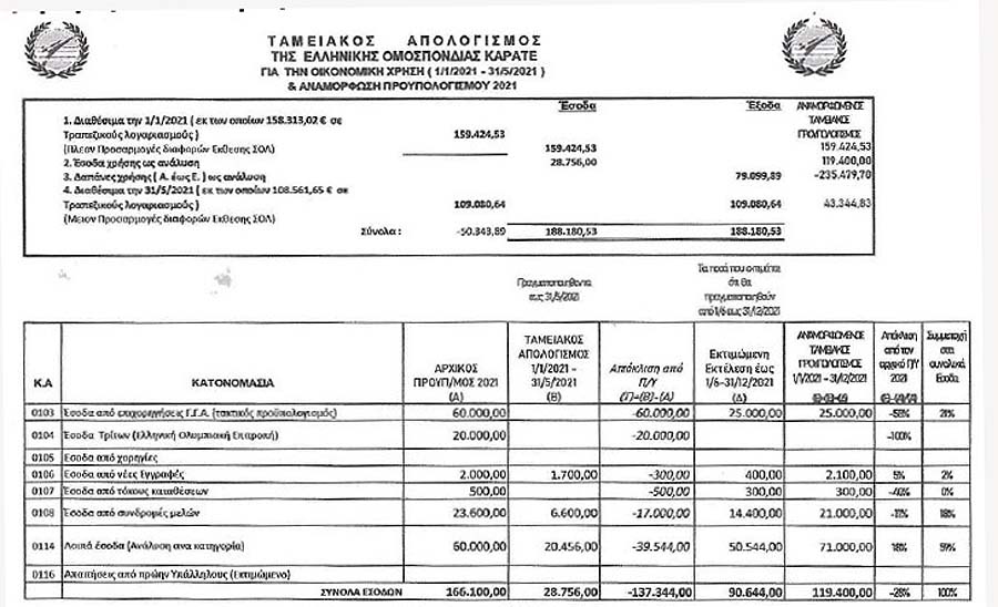 Αυτά όλα είναι άσχετα με τον τρόπο, που θέλει η Εφορία τα λογιστικά της ΕΛΟΚ, ή η ΓΓΑ ή η Περιφέρεια! Την απλή παρουσίαση για απλούς ανθρώπους για άμεσο έλεγχο την απαιτούν οι υπόλοιποι σύμβουλοι του ΔΣ από την Εκτελεστική Επιτροπή για να τα εγκρίνουν σε κάθε πρακτικό , η Ελεγκτική Επιτροπή από το ΔΣ για τους ελέγχους της και η Γενική Συνέλευση των συλλόγων-μελών από το Διοικητικό Συμβούλιο και για αυτούς τους λόγους αυτά τα τμηματικά Οικονομικά Στοιχεία αποτελούν αναπόσπαστο τμήμα από τα Πρακτικά του ΔΣ!