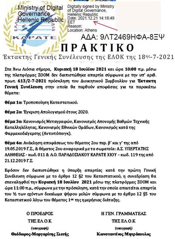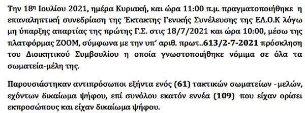 Θ - 18/7/2021 - Το Πρακτικό της Επαναληπτικής ΓΣ με ανάρτηση στη ΔΙΑΥΓΕΙΑ την 21/12/2021!