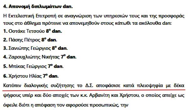 Από ό,τι βλέπουμε πρώτα καθορίστηκε η Εξεταστική Επιτροπή και μετά έδωσαν στον εαυτό τους τα Νταν με διαλογική συζήτηση! Ή έχεις Ηθικές Αρχές ή δεν έχεις! Διορθώστε, λοιπόν, πιο πάνω τα τρία όγδοα Νταν στους Οοτάκε, Πάση και Σανιώτη! Βάλτε και Περσίδης 10 Νταν! (Γιατί δηλαδή, εγώ στο πηγάδι .. κατούρησα? Α-Σιετή, περιμένω το δίπλωμα!)