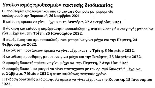Και μια και το θυμηθήκαμε κι' αυτό, ας δούμε και τις ημερομηνίες των εξελίξεων από την δικονομία στην Αγωγή Ακύρωσης των Εκλογών της 29/5/2021 (κατάθεση την 26/11/2021) στην οποία Αγωγή ελπίζει ο Γερόλυμπος, ο οποίος από συλλόγους πάει ... βεβράκωτος στα ... αγκάθια: