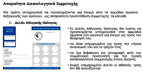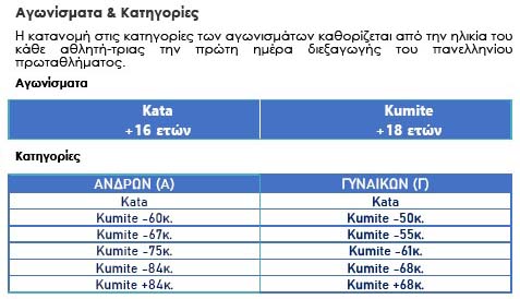Με κλικ εδώ βλέπετε την Προκήρυξη των Αγώνων, οι οποίοι γίνονται στις επόμενες κατηγορίες: