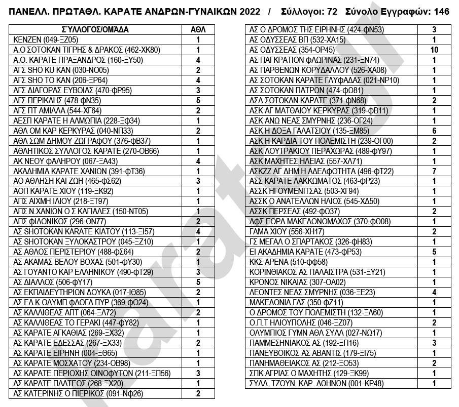 3) με μόνο 13 συλλόγους να κατεβάζουν αθλήτριες στα Κάτα Γυναικών (απόδειξη ότι των άλλων συλλόγων οι προπονητές δεν ξέρουν τα Κάτα),