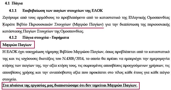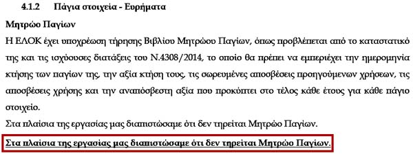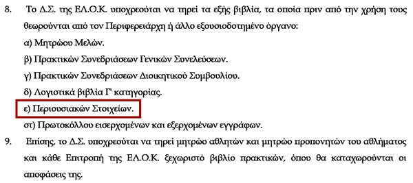 Επαναλαμβάνεται η καραμπινάτη παράβαση-παρανομία διαρκείας από το 1995: η παντελής έλλειψη Βιβλίου Περιουσιακών Στοιχείων για την ΕΛΟΚ!