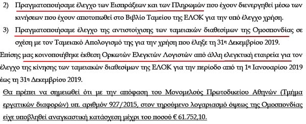 Εδώ τονίζεται ότι η ΕΛΟΚ συστηματικά και παράνομα δεν θεωρούσε τα παραστατικά της στην Περιφέρεια, όπως είχε υποχρέωση!