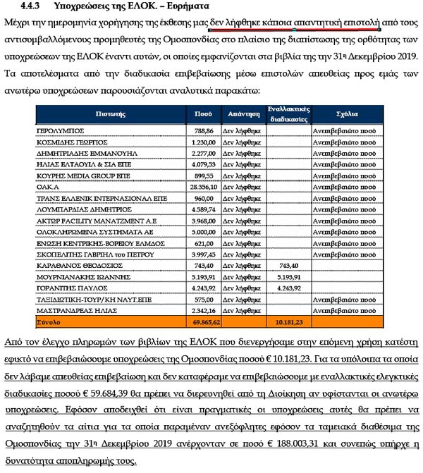 | 24 | Δεν επιβεβαιώθηκαν οι οφειλές της ΕΛΟΚ από τους προμηθευτές της (εσκεμμενα?) | — | + | |