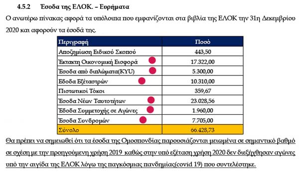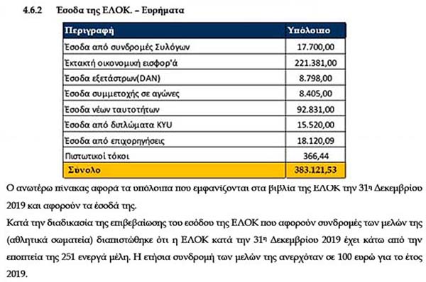 Έκτακτη Οικονομική Εισφορά: ονομαστικά από ποιούς και γιατί? Έσοδα από Κύου: ονομαστικά από ποιούς και γιατί, αφού δεν έχει Κύου η ΕΛΟΚ? Έσοδα από εξέταστρα (Νταν): ονομαστικά από ποιούς και γιατί, αφού δεν έχει Νταν η ΕΛΟΚ? Έσοδα νέων ταυτοτήτων: ονομαστικά από ποιούς και γιατί? Ποιό άλλο άθλημα έχει ταυτότητες? Έσοδα συμμετοχής σε αγώνες: αυτό μάλιστα!