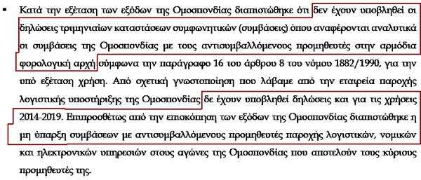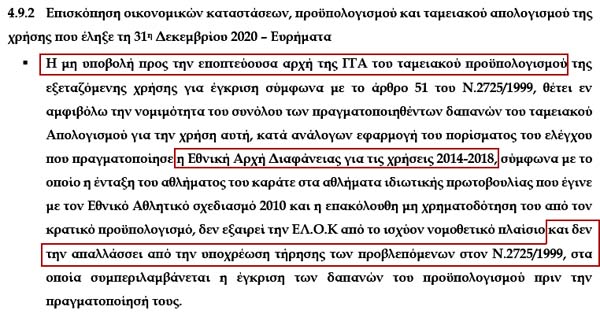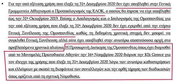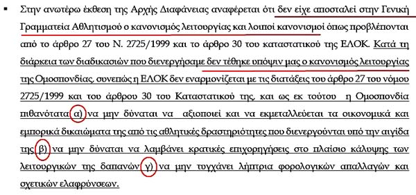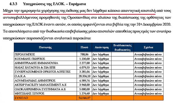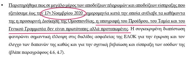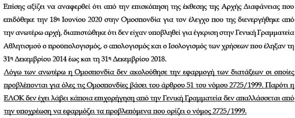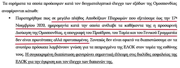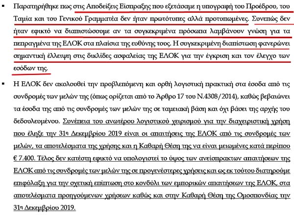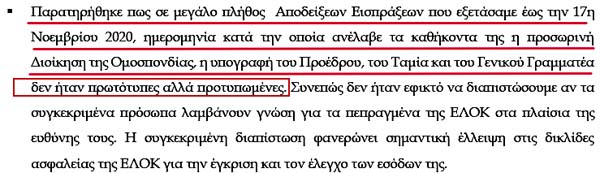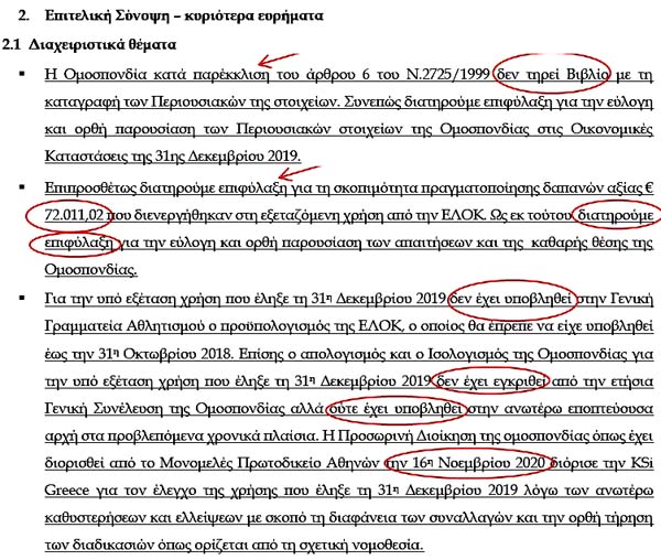 Επιτελική Σύνοψη και κυριότερα ευρήματα! Αυτό σημαίνει καραμπινάτες παραβάσεις των νόμων, που τις πληρώνουν από την τσέπη τους τα μέλη του ΔΣ της ΕΛΟΚ!