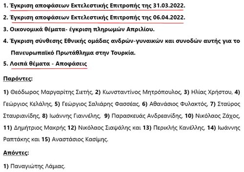 Θ – 30/4/22 – Το Πρακτικό του ΔΣ/ΕΛΟΚ και Παρατηρήσεις!