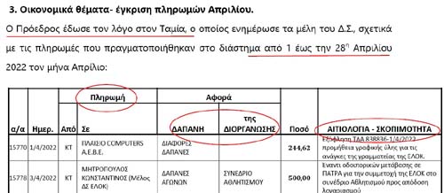 Οι δαπάνες παρανόμως δεν προ-εγκρίνονταν και δεν εγκρίνονταν στα Πρακτικά του ΔΣ |
