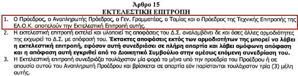Από πάντα, όμως, και όταν λέω "πάντα" εννοώ ΠΑΝΤΑ, δηλαδή από την αρχή της εποχής Γερόλυμπου, η Εκτελεστική Επιτροπή ήταν η ΔΙΚΤΑΤΟΡΙΑ του ΕΝΟΣ τότε και των ΤΡΙΩΝ τώρα! Δηλαδή η ΕκτΕπ έπαιρνε μόνη της και από πάντα μέχρι και σήμερα όλες τις αποφάσεις για τη λειτουργία της ΕΛΟΚ! Τότε ο Γερόλυμπος και σήμερα οι Χρήστου, Μητρόπουλος και Φυλακτός!
