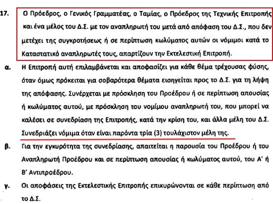 Με βάση, λοιπόν, το παλιό καταστατικό, η Εκτελεστική Επιτροπή ήταν αυτομάτως καθορισμένη από το καταστατικό και αποτελείτο από τους Σιετή, Χρήστου, Μητρόπουλο, Φυλακτό και Σταυριανίδη, όπως εξακριβώνεται και από την φωτό!