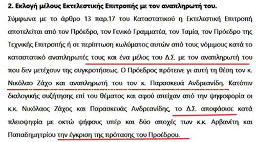 Τέλος, στο Πρακτικό του ΔΣ (παράνομα χωρίς αριθμό) της 15/10/2021 αποφασίστηκε να βγει ο Ηλίας Χρήστου και η πέμπτη θέση στην Εκτελεστική Επιτροπή να δοθεί στις "γλάστρες" κ. Νίκο Ζάχο με αναπληρωτή τον Παρασκευά Ανδρεανίδη!